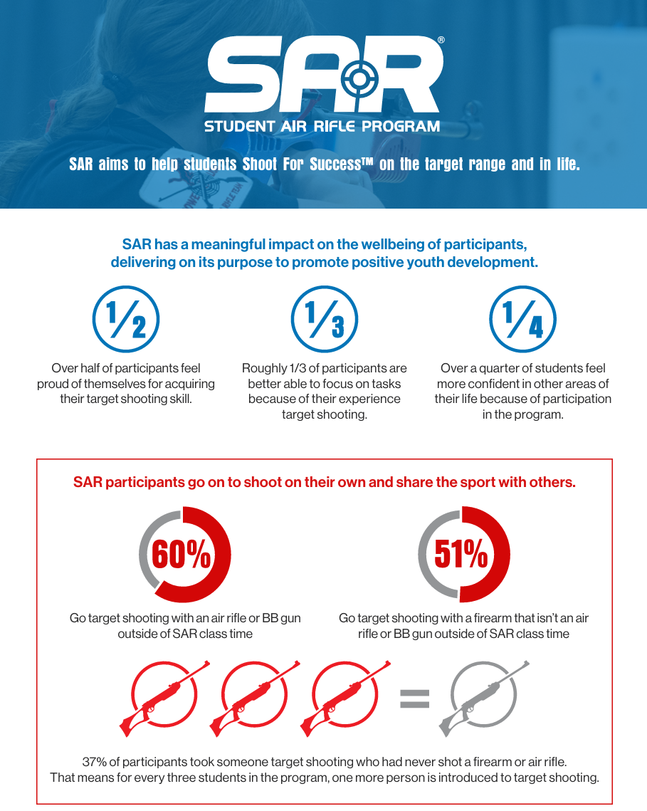 The purpose of the SAR is to increase involvement in shooting sports, enhance educational performance, and promote positive youth development through firearms safety and target shooting education.